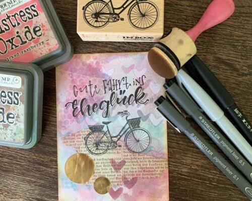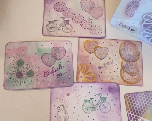 - Wir arbeiten mit Stempelkissen-Farbe, so gelingt jedes Werk (Fototransfer und Acryl-Farben-Druck sind nicht Inhalt dieses Kurses)