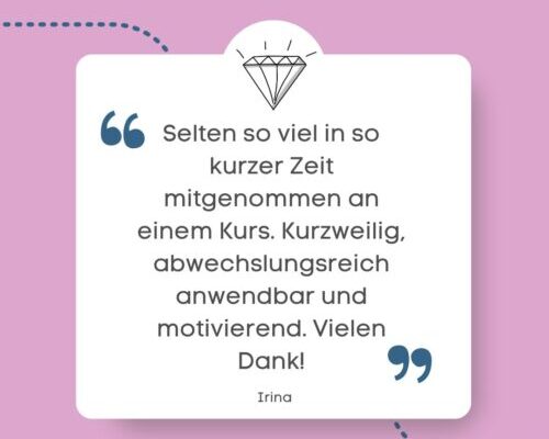 - Sie nehmen konkrete Ideen und mindestens eine Karte vom Kurs mit.
