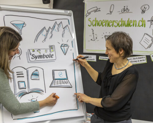 - Grundkenntnisse im Visualisieren oder ein besuchter Basiskurs im Bereich Flipchart/Visualisierung/Sketchnotes sind von Vorteil.