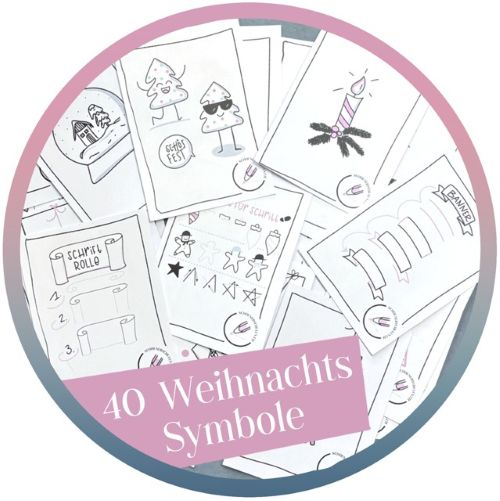 - Gönnen Sie sich zusätzlich eine unserer weihnachtlichen Kursaufzeichnungen aus den letzten Jahren. Die Aufzeichnung „Kritzel-Spass Weihnachten 2025“ wird ab 2026 ebenfalls verfügbar sein – dort werden einige dieser Symbole Schritt für Schritt gekritzelt.
