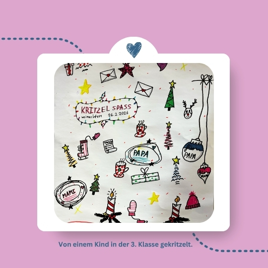 In diesem Kurs zeigen wir Ihnen, wie Sie mit wenigen Strichen Weihnachtssymbole im Kindertempo gestalten können. Beim Live-Kurs waren Kinder ab 5 Jahren beim Kurs mit dabei.