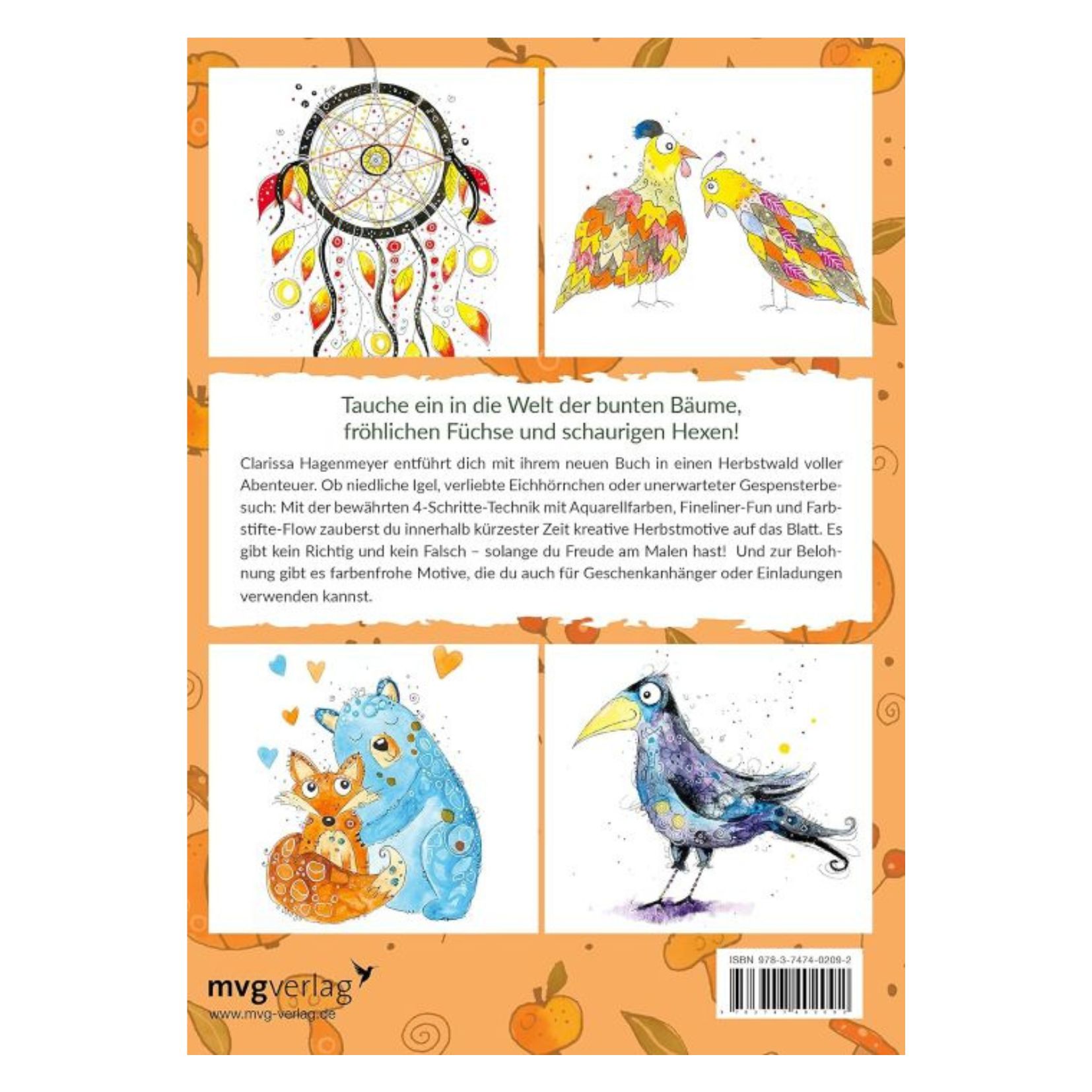 Clarissa Hagenmeyer entführt dich mit ihrem neuen Buch in einen Herbstwald voller Abenteuer. Ob niedliche Igel, verliebte Eichhörnchen oder unerwarteter Gespensterbesuch: Mit der bewährten 4-Schritte-Technik mit Aquarellfarben, Fineliner-Fun und Farbstifte-Flow zauberst du innerhalb kürzester Zeit kreative Herbstmotive auf das Blatt. Es gibt kein Richtig und kein Falsch – solange du Freude am Malen hast! Und zur Belohnung gibt es farbenfrohe Motive, die du auch für Geschenkanhänger oder Einladungen verwenden kannst.